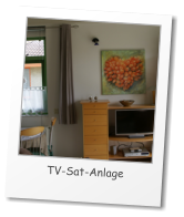Im Wohnzimmer sitzen Sie auf bequemen Polstermöbeln. Die TV-Sat-Anlage mit DVD-Player ist an